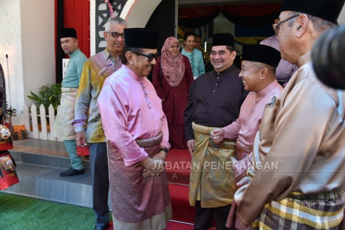 Putatan : Yang di-Pertua Negeri Sabah Tun Musa Aman dan isteri, Toh Puan Faridah Tussin menghadiri Majlis Rumah Terbuka 5 Divisyen di Dewan Kinabalu Kem Lok Kawi, di sini semalam.