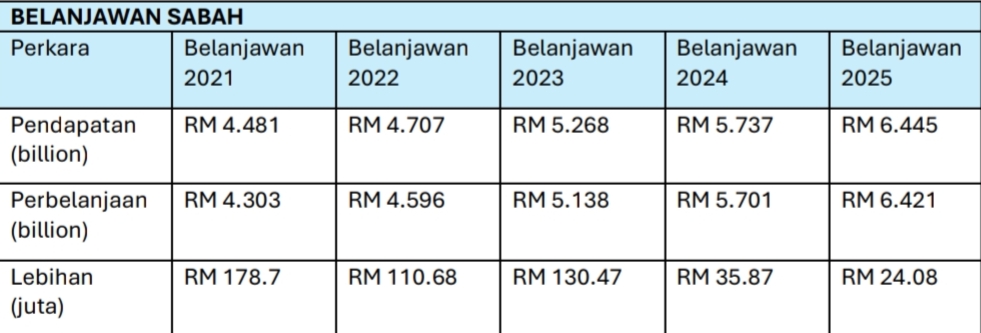 Bagi tahun 2025, lebihan belanjawan walaupun kecil (RM24.08 juta), tetap mencerminkan disiplin fiskal berterusan.
