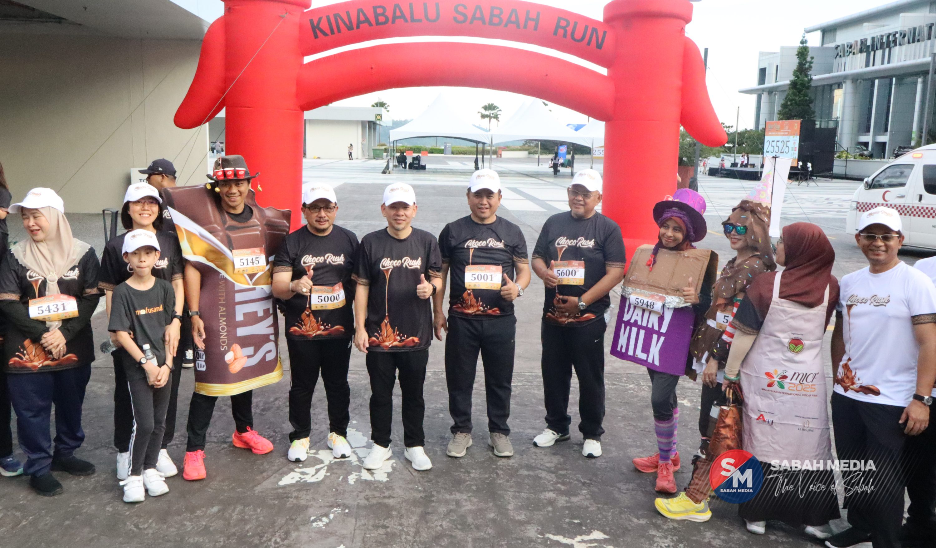 Kota Kinabalu : Lebih 1,000 peserta dari seluruh negara hadir menyertai acara larian lima kilometer ‘Choco Rush’ sempena penganjuran Pameran Koko Antarabangsa Malaysia (MICF) di Pusat Konvensyen Antarabangsa Sabah (SICC) di sini pada Ahad.