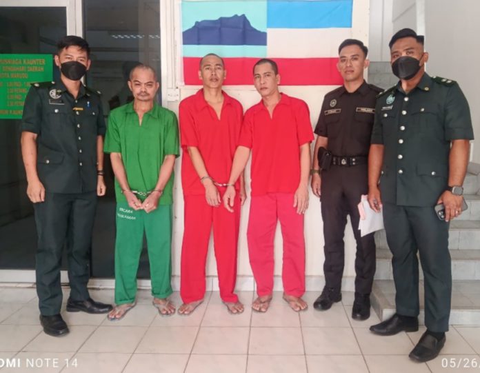 KOTA MARUDU: Tiga warga Filipina dijatuhi hukuman penjara dan denda oleh Mahkamah Kota Marudu hari ini selepas didapati bersalah memiliki kira-kira 865 kilogram hasil haiwan penyu hijau (Chelonia mydas) yang disimpan dalam 39 karung dan 14 kotak.