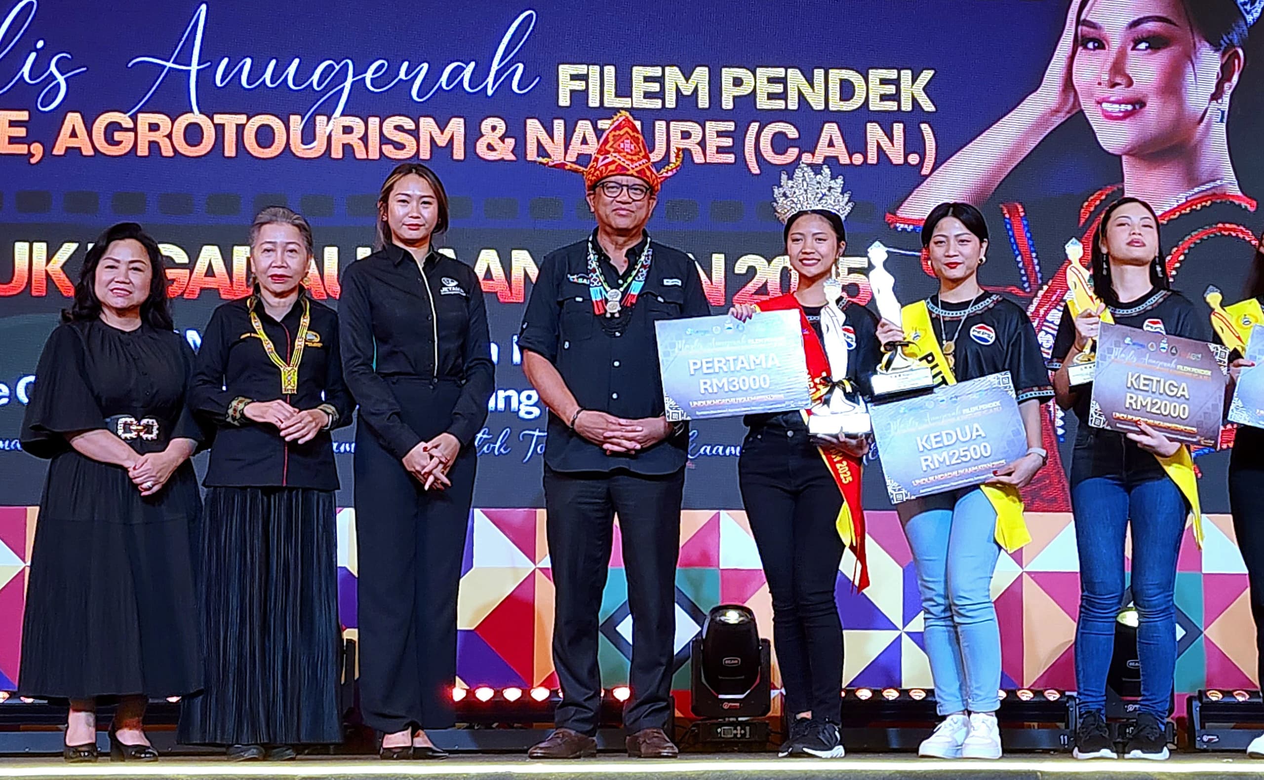 Tiga pemenang utama pertandingan filem pendek C.A.N ialah Unduk Ngadau Jenylin Janis mewakili Ranau di tempat pertama, diikuti oleh Emelka Ryner dari Putrajaya di tempat kedua, dan Ivy Davina David mewakili Inanam di tempat ketiga. – SABAH MEDIA