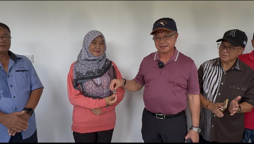 Ibu kepada tiga anak itu menerima kunci rumah baharu miliknya disampaikan Timbalan Ketua Parti Gagasan Rakyat Sabah (PGRS) Bahagian Pitas, Datuk Harun Ismail.