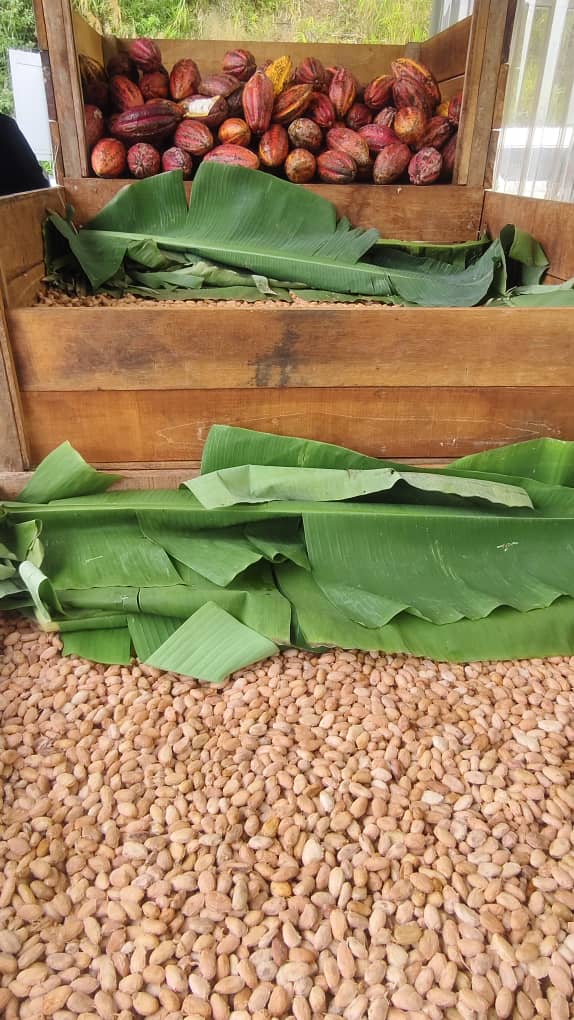 Biji koko diperam lebih daripada lima hari sebelum dikeringkan.