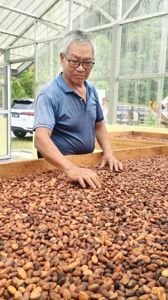 “Bantuan baja yang kami beri mungkin cukup untuk 60 peratus hingga 70 peratus keperluan. Selebihnya, petani sendiri perlu berusaha lebih, tambah baja, jaga pokok elok-elok. Apabila pokok sihat dan gemuk, maka hasil akan lebih baik,” katanya ketika dalam sidang media selepas membawa rombongan Malaysia International Cocoa Festival (MICF) 2025 melawat ladang koko di kampung itu baru-baru ini.