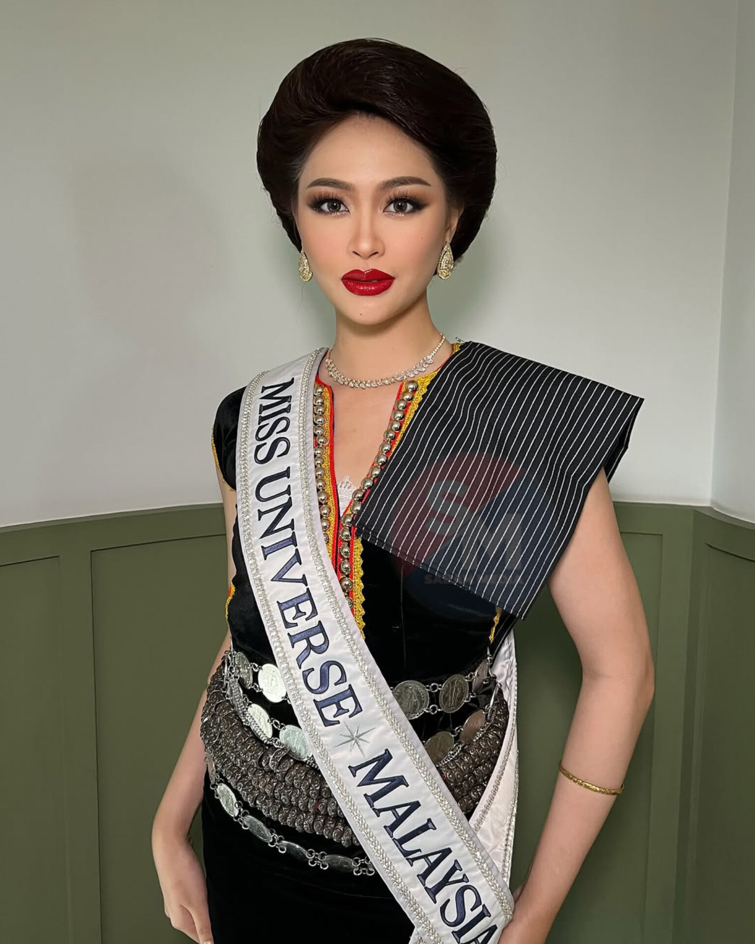 Kehadirannya mencuri tumpuan bukan sahaja kerana gelaran yang disandang, tetapi juga kerana penampilannya yang menggayakan pakaian tradisional daripada beberapa kumpulan etnik iaitu Murut, Lundayeh dan Kadazan Penampang.