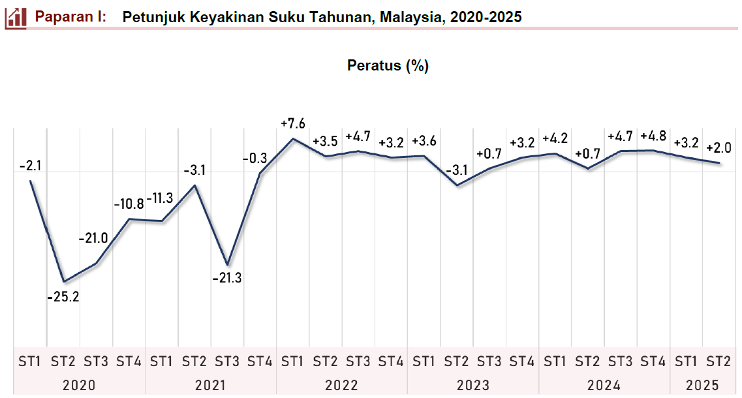 Agak membimbangkan, Petunjuk Keyakinan telah merekodkan trend menurun untuk 3 Suku Tahun berturut-turut, sejak Suku Ke-4 2024.