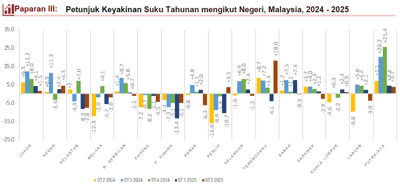 Hanya Johor dan WP Putrajaya terus merekodkan Petunjuk Keyakinan positif bagi 4 Suku Tahun berturut-turut.