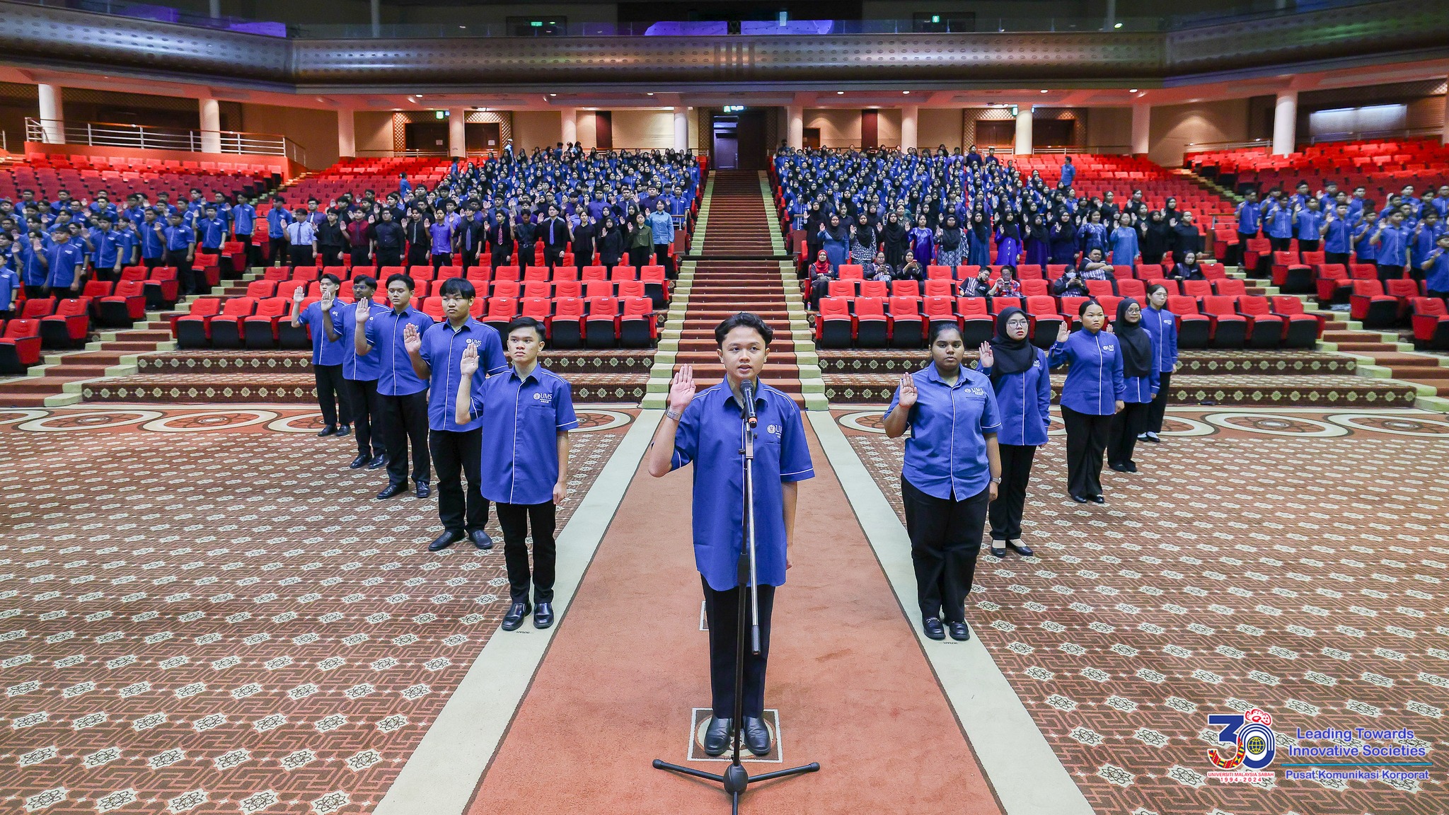 Lafaz ikrar pelajar baharu program Asasi UMS diketuai oleh Jeremy Landa Juil. – SABAH MEDIA / FOTO UMS