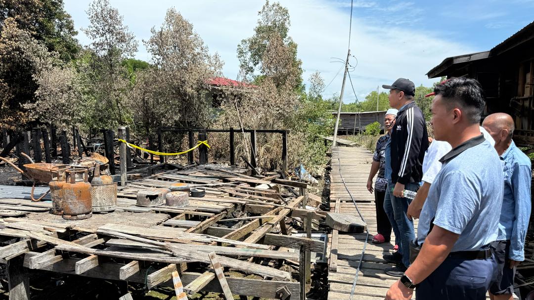 Andy Suryadi (tengah) ditemani penduduk kampung meninjau lokasi serta rumah mangsa kebakaran di Kampung Seri Menanti Otentik. -Foto Sabah Media/Sitti Nor Azizah Talata