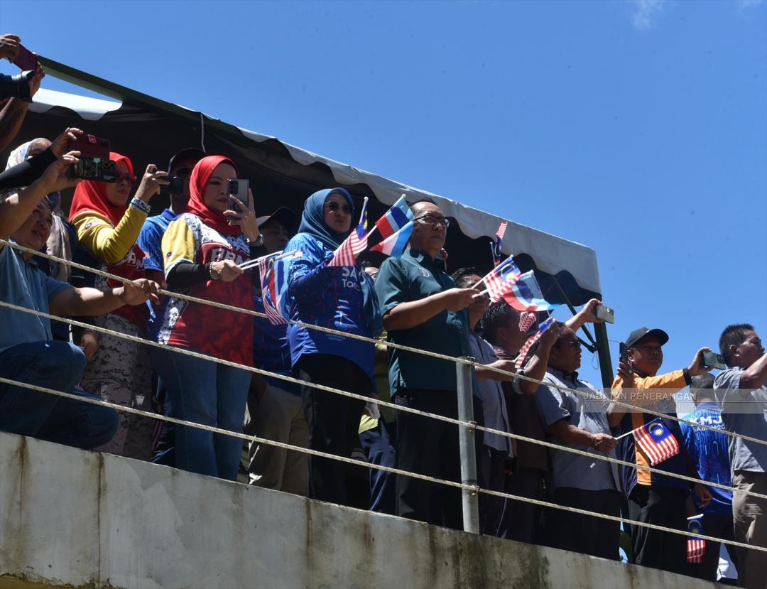 Abdul Ghani bersama orang ramai menyaksikan perarakan perahu berhias.