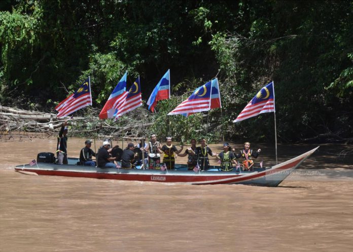 Pagalungan : Sebanyak 14 perahu berhias menelusuri Sungai Pagalungan di sini sebagai simbolik menyambut kedatangan konvoi Kembara Merdeka Jalur Gemilang (KMJG).