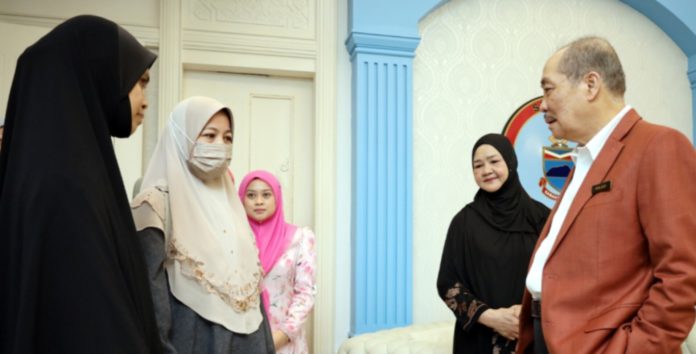 KOTA KINABALU: Ketua Menteri, Datuk Seri Hajiji Noor bersama isteri, Datin Seri Juliah Salag, hari ini bertemu ibu kepada Allahyarhamah Zara Qairina Mahathir, Noraidah Lamat di Sri Gaya bagi menyampaikan takziah dan simpati mendalam.