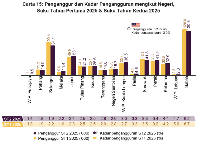 Langkah-langkah ini disusuli perkembangan positif dalam pasaran kerja. Laporan Survei Tenaga Buruh Suku Kedua 2025 menunjukkan kadar pengangguran Sabah menurun kepada 6.2 peratus, berbanding 6.7 peratus pada suku pertama. Jumlah penganggur juga menurun sebanyak lebih 6,000 orang atau lima peratus kepada 120,300 orang .