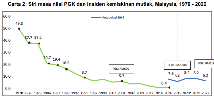 Laporan Kemiskinan Malaysia 2022 oleh Jabatan Perangkaan Malaysia (DOSM) menunjukkan insiden miskin mutlak menurun ketara daripada 49.3 peratus pada 1970 kepada hanya 6.2 peratus pada 2022. Malah, Kementerian Ekonomi memaklumkan pada Februari lalu bahawa beberapa negeri termasuk Putrajaya, Negeri Sembilan, Melaka dan Perlis telah mencatat sifar miskin tegar sehingga akhir 2024.