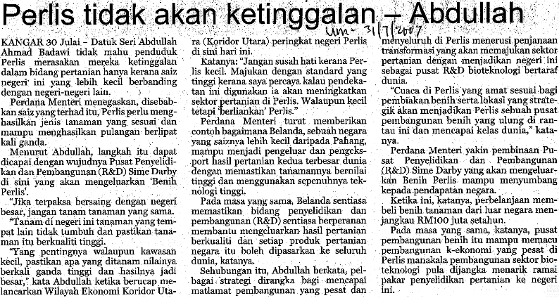 Isu benih bukanlah perkara baharu. Pelan Tindakan Sosioekonomi Wilayah Ekonomi Koridor Utara (2007–2025) pernah merancang pembangunan benih tempatan di Perlis, termasuk pembinaan Pusat Penyelidikan dan Pembangunan Benih Sime Darby. Namun, projek itu gagal direalisasikan akibat isu birokrasi dan campur tangan pihak berkepentingan, sehingga menjejaskan potensi Malaysia untuk muncul sebagai pengeluar benih unggul di rantau ini .
