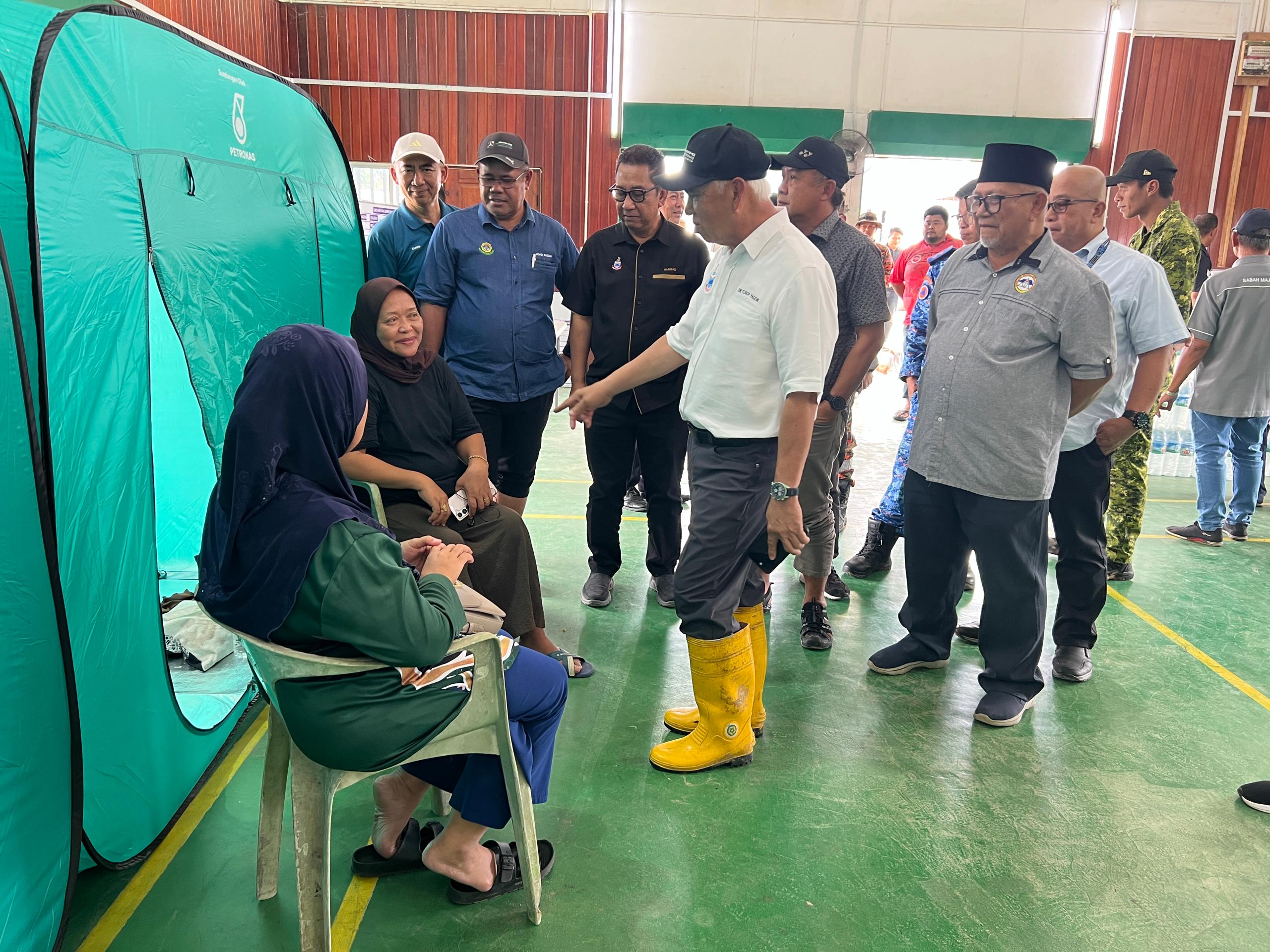 Mereka melawat Pusat Pemindahan Sementera (PPS) Dewan Mini Mesapol, salah sebuah PPS yang dibuka di Sipitang.