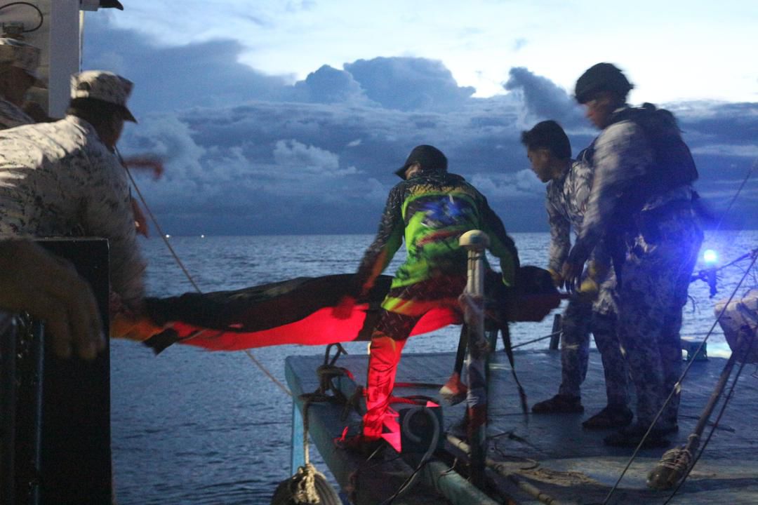 “Pada pukul 6.14 petang, lima anggota Philippine Coast Guard Sub Division Operation Taganak diketuai Ens. Datu Halun menerima tiga mangsa berkenaan daripada KM BANGGI yang diketuai Komander Maritim Mahathir bin Mohammad.