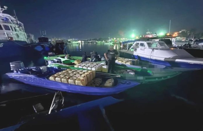 “Hasil pemeriksaan menemukan 327 jerekin berisi petrol selain tiga bot yang disyaki digunakan sebagai pengangkutan penyeludupan.