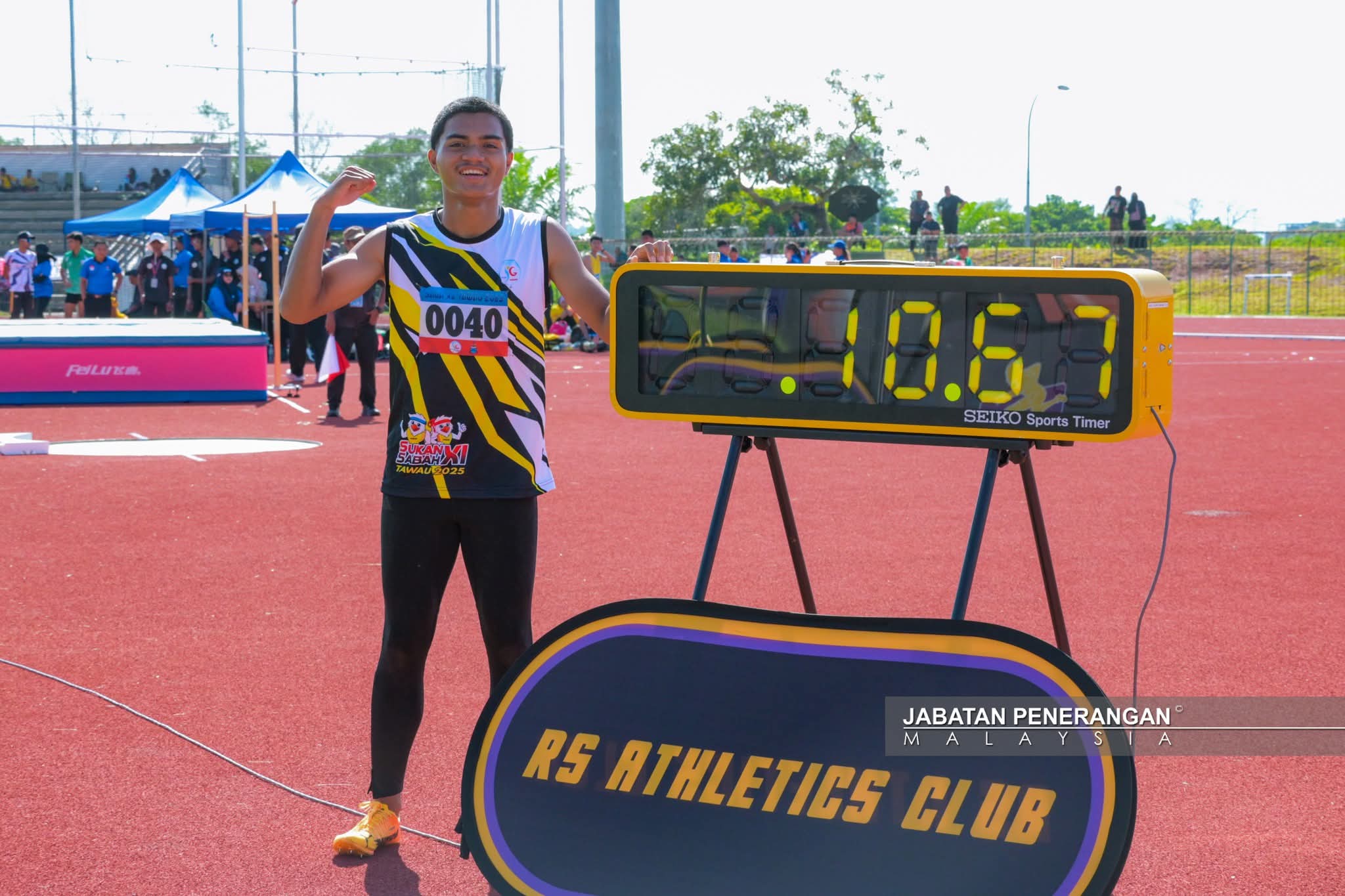 Di tempat kedua ialah Carlson Camilus dengan masa 10.72 saat, manakala rakan sepasukan dari Ranau, Muhammad Muzaffar Shah Abdul Sahidiu, meraih pingat gangsa dengan catatan 10.77 saat.