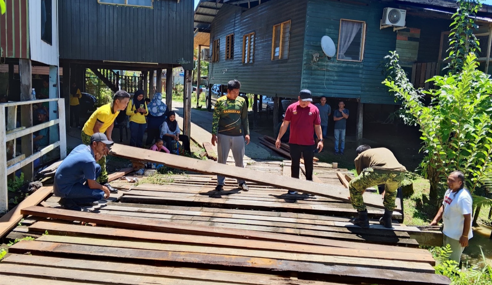 SANDAKAN : Penduduk Kampung Lorong Selamat Batu 16, Gum-Gum kini boleh menarik nafas lega apabila jambatan utama yang menjadi laluan harian mereka berjaya dibaiki hasil inisiatif gotong-royong bersama pemimpin tempatan, RELA, dan komuniti setempat.