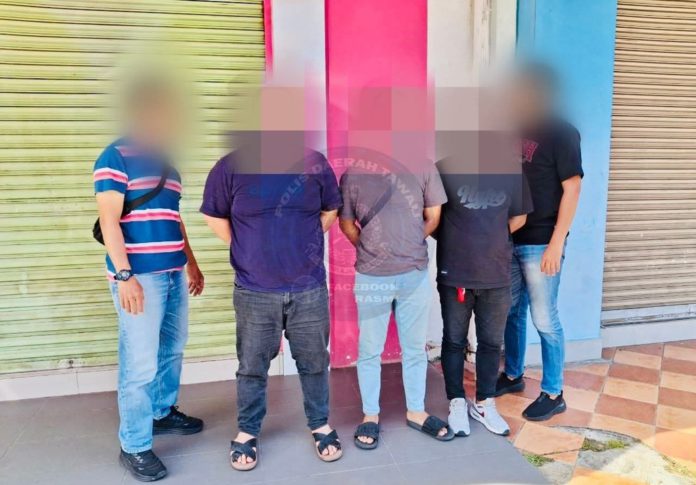 Ketua Polis Daerah Tawau, Asisten Komisioner Jasmin Hussin, berkata hasil siasatan terhadap dua suspek terdahulu membawa kepada penahanan tiga lagi lelaki berusia 30 hingga 38 tahun di sekitar Pusat Komersial Ba Zhong kira-kira jam 2 petang, semalam.