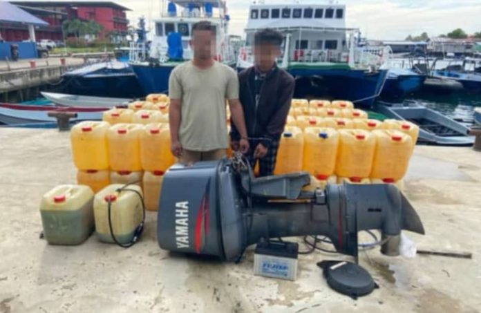 SEMPORNA: Dua lelaki warga asing ditahan Pasukan Polis Marin (PPM) selepas dipercayai terbabit dalam cubaan menyeludup keluar minyak petrol subsidi bernilai lebih RM111,000 ke negara jiran, awal pagi semalam.