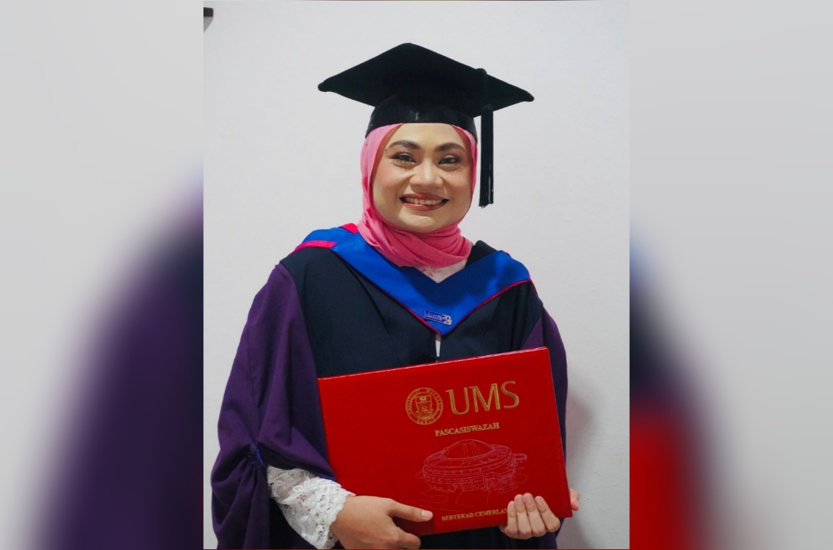 “Saya bukan saja jatuh cinta dengan bidang ilmu, tapi dengan para pensyarah dan komuniti UMS sendiri. Walaupun kami pelajar separuh masa, hubungan kami rapat seperti keluarga,” katanya.