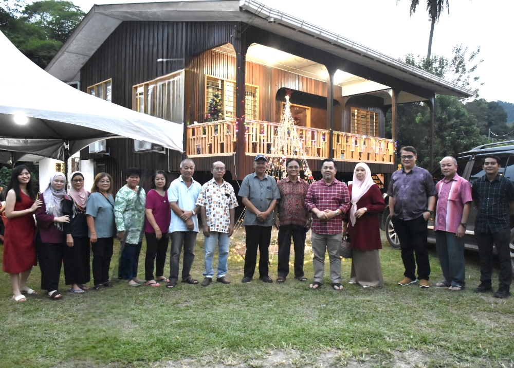 Jamawi (lima dari kanan) bersama isteri bergambar kenangan ketika mengunjungi Rumah Terbuka Krismas di Kampung Pulong, kelmarin.