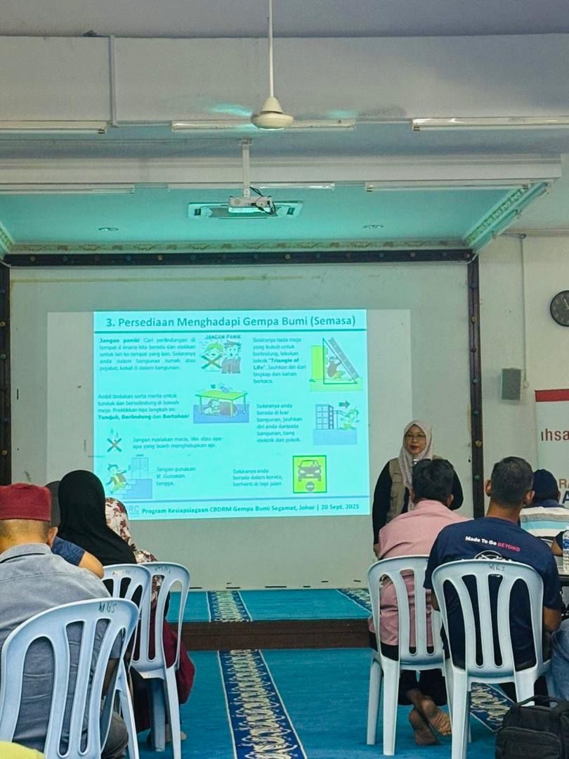 Program berkenaan melibatkan penyertaan komuniti dari kawasan DUN Buloh Kasap dan DUN Pemanis, selain penglibatan agensi teknikal, pasukan tindak balas bencana serta pertubuhan bukan kerajaan (NGO), sekali gus memperkukuh kesiapsiagaan komuniti berdepan risiko gempa bumi.