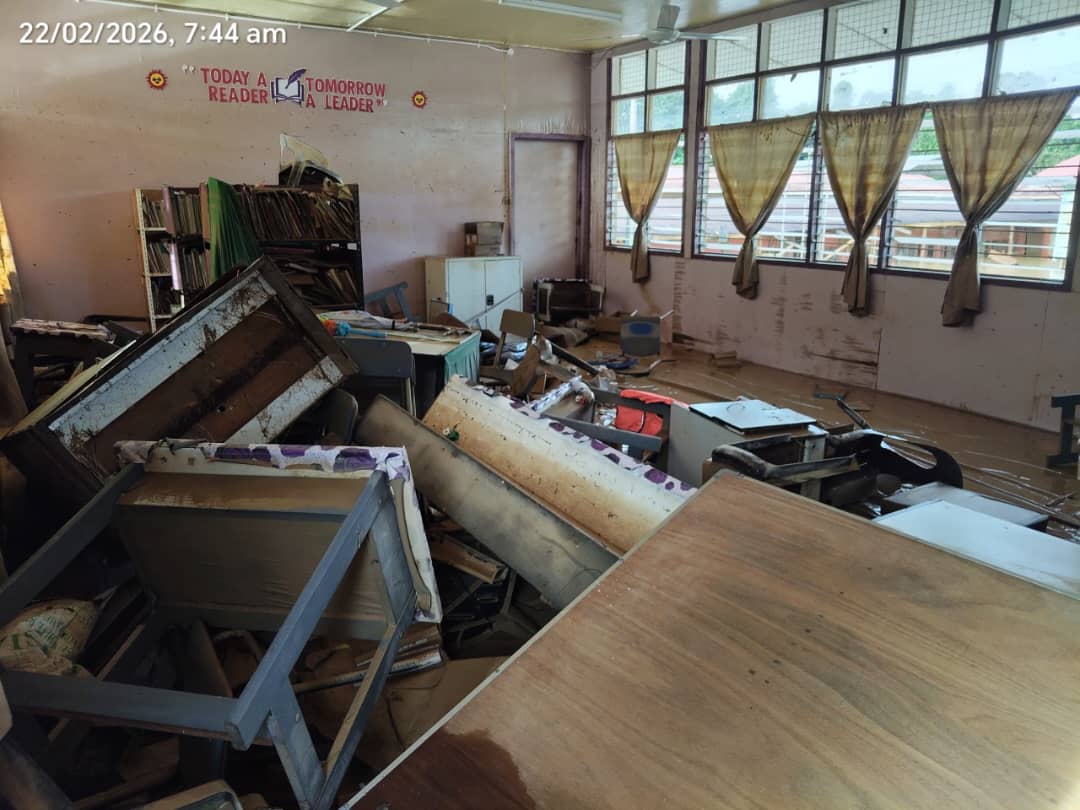 Pusat sumber SK Simpangan Paitan, Beluran yang rosak akibat banjir – Foto Ihsan Guru SK Simpangan Paitan, Beluran