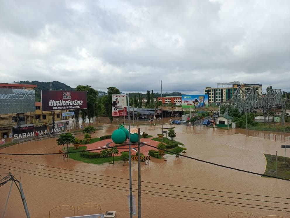BEAUFORT: Aktiviti perniagaan sekitar Pekan Beaufort di sini, lumpuh sepenuhnya apabila hampir keseluruhan kawasan pekan ini ditenggelami air selepas paras air Sungai Padas dilaporkan semakin meningkat sebelum melimpah ke jalan raya berhampiran.
