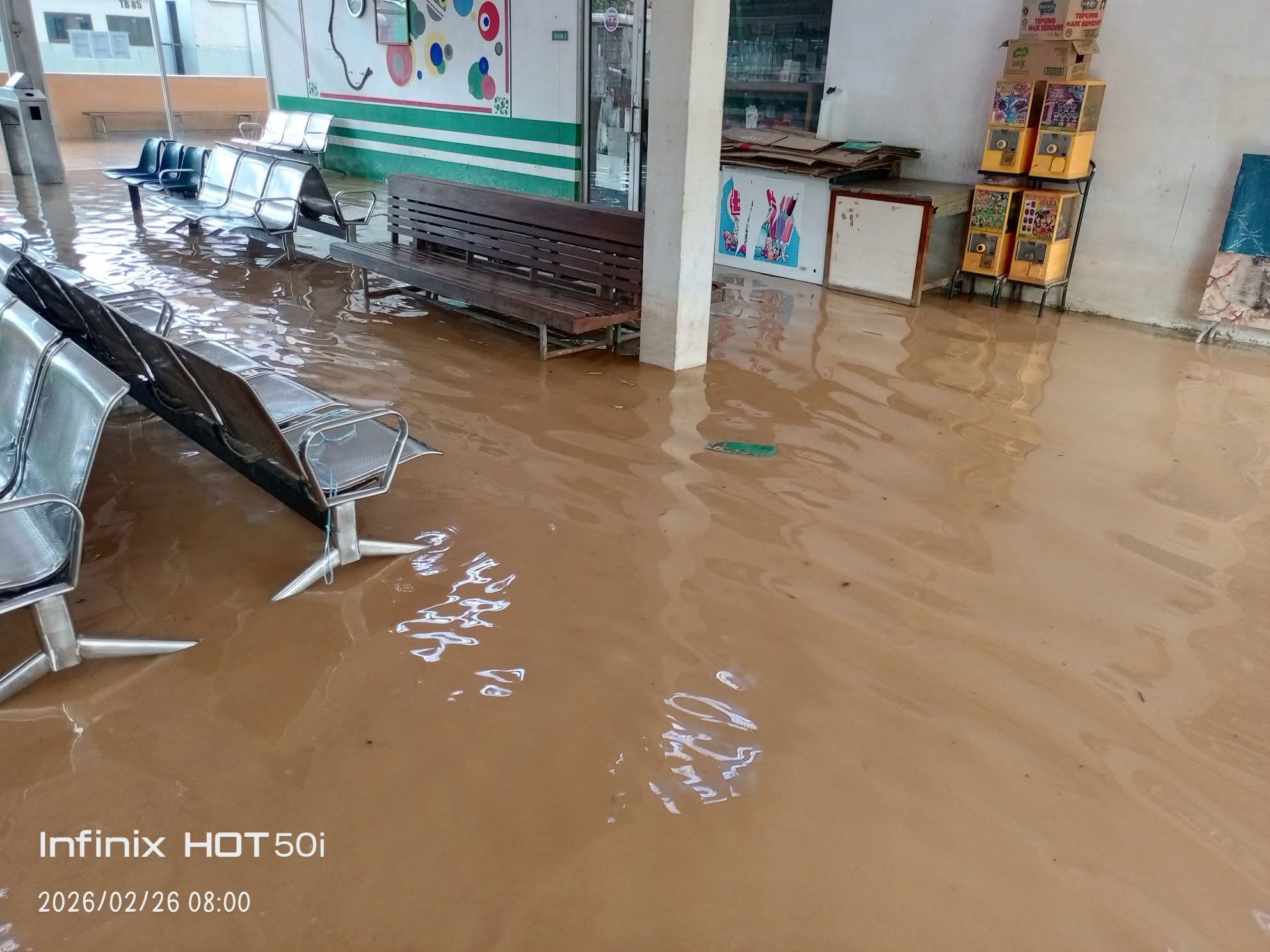 Selain premis kedai, banjir turut memasuki stesen kereta api dan menjejaskan perkhidmatan yang menghubungkan daerah ini dengan Kota Kinabalu dan kampung di bahagian hulu Sungai Padas.
