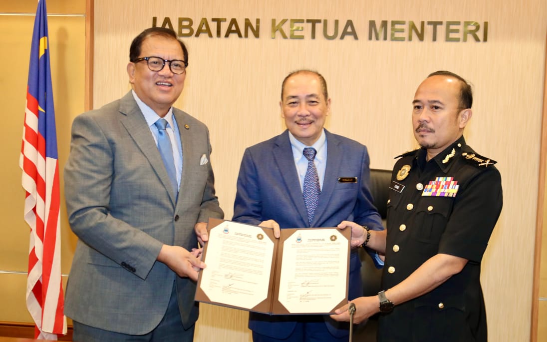 Turut hadir Pengarah Bahagian Kabinet dan Dasar Jabatan Ketua Menteri, Dayang Noorashikhin Zulkefli dan Penasihat Integriti kepada Ketua Menteri, Ketua Penolong Kanan Pesuruhjaya (KPKPJ) SPRM, Awang Samsul Baharam Bungso.