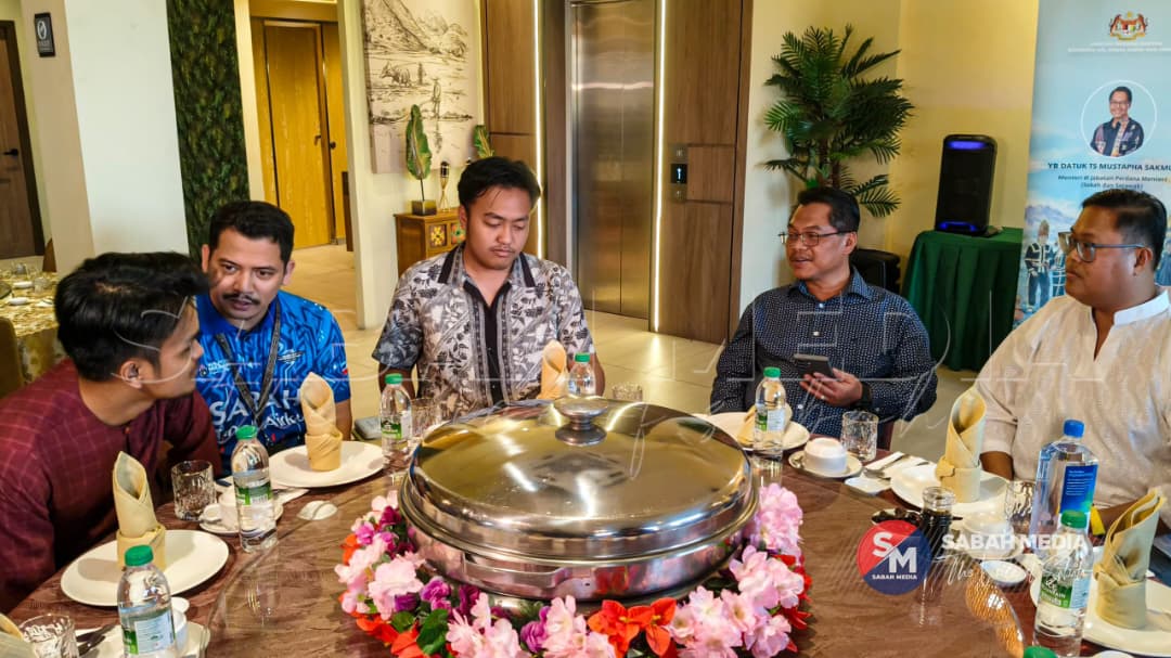Mustapha (dua dari kanan) bersama pengamal media. Foto Sabah Media / Alexter Rosalia