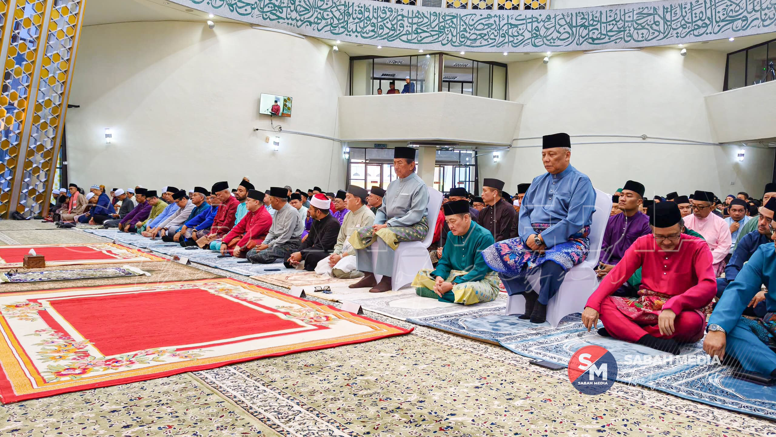 KOTA KINABALU: Yang di-Pertua Negeri Tun Musa Aman bersama Ketua Menteri Datuk Seri Hajiji Noor pagi tadi menunaikan Solat Sunat Aidilfitri bersama ribuan jemaah di Masjid Negeri hari ini.