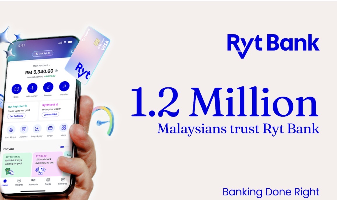 KUALA LUMPUR,— Ryt Bank berjaya mencatat pencapaian signifikan apabila meraih lebih 1.2 juta pengguna dalam tempoh hanya tujuh bulan sejak pelancarannya pada Ogos 2025, sekali gus meletakkannya antara bank digital paling pesat berkembang di Malaysia.