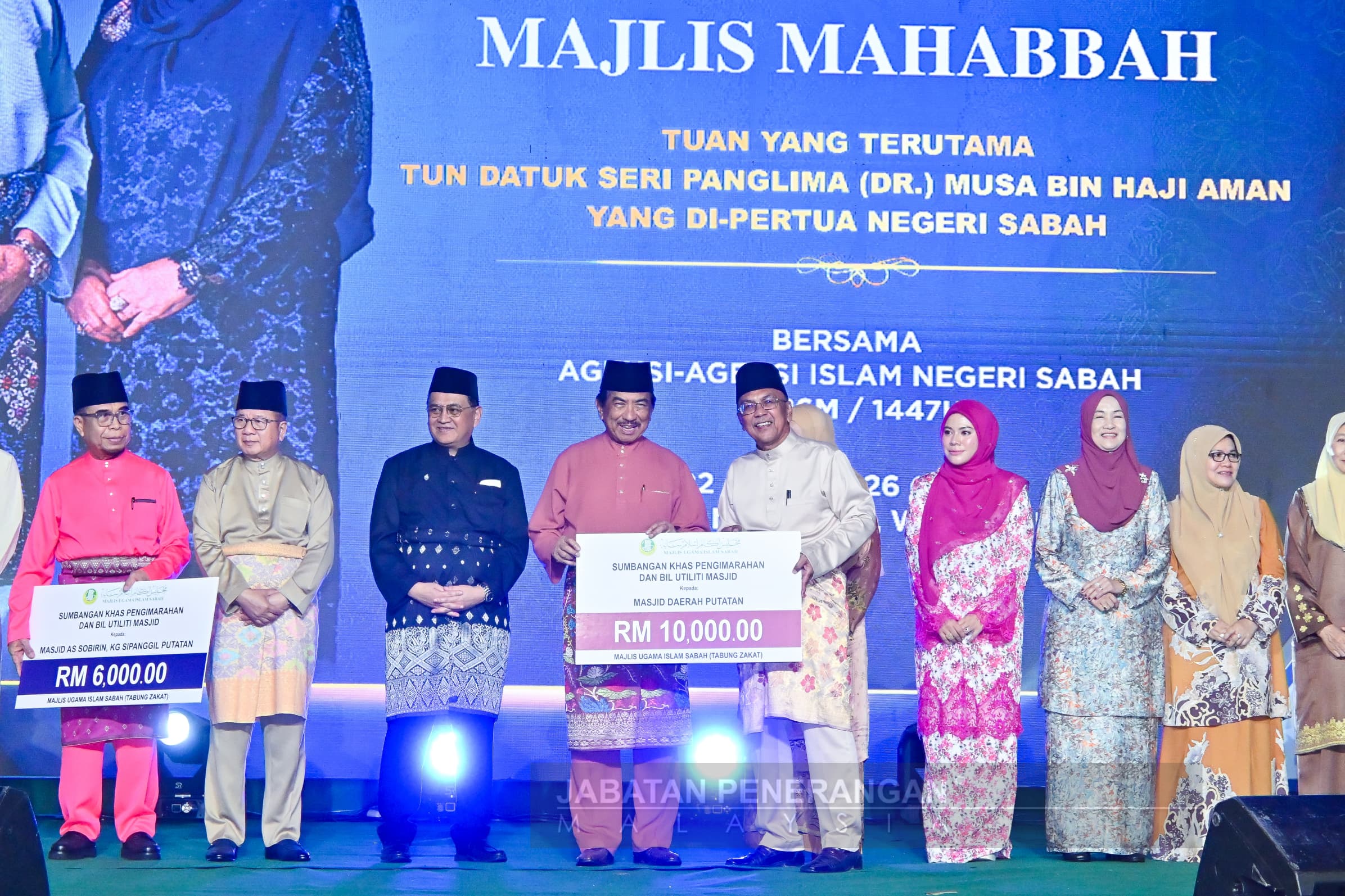 Majlis tersebut diserikan dengan kehadiran Yang di-Pertua Negeri Sabah, Tun Musa Aman dan isteri, Toh Puan Faridah Tussin yang turut menyampaikan sumbangan kepada 20 asnaf.