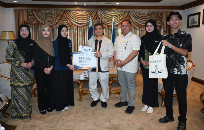 Majlis penyerahan bantuan itu disempurnakan Naib Canselor UMS, Profesor Datuk Dr. Kasim Mansor.