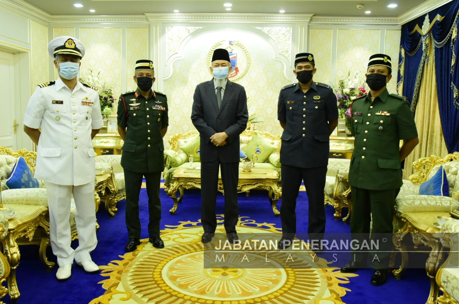 KOTA KINABALU: Yang Dipertua Negeri, Tun Juhar Mahiruddin menerima kunjungan hormat daripada Komander Angkatan Tugas Bersama 2 Tawau, Brigedier Jeneral Abdul Karim Ahmad.