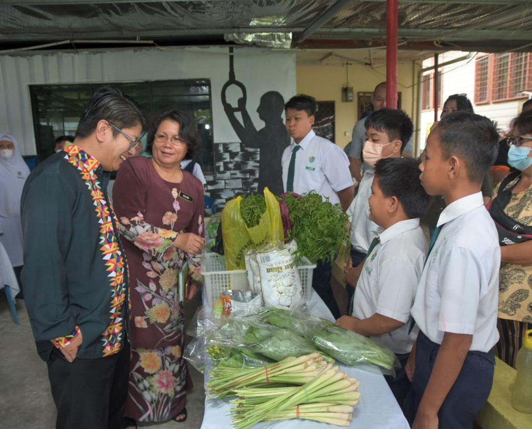Sumbangan berupa beg sekolah, bekas bekal makanan, alat tulis dan subsidi pakaian seragam sekolah untuk persiapan bagi sesi persekolahan yang baharu, disampaikan oleh Menteri Pembangunan Usahawan dan Koperasi Malaysia Datuk Ewon Benedick, di SK Tamu Darat, di sini, semalam.